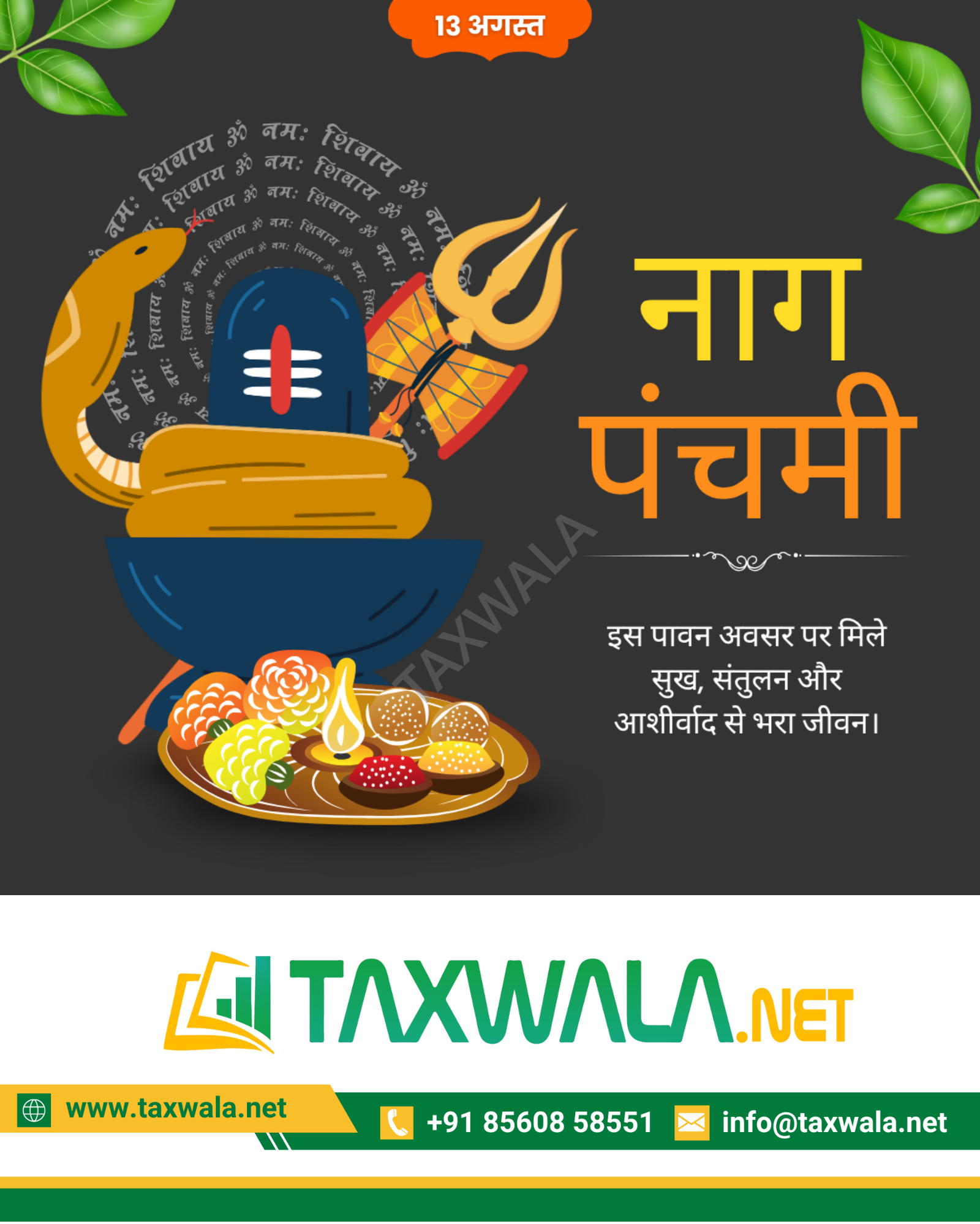 A festival dedicated to worshipping serpents, celebrated on the fifth day of Shravan month. Devotees offer milk, flowers, and prayers to snake deities like Sheshnag and Vasuki, seeking protection, prosperity, and blessings. 🐍🙏